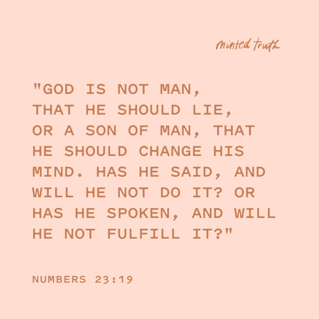 "God is not man, that he should lie, or a son of man, that he should change his mind. Has he said, and will he not do it? Or has he spoken, and will he not fulfill it?" Numbers 23:19